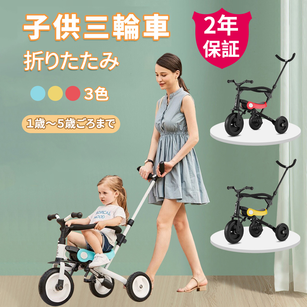 DOMIYA 子供用三輪車 三輪車 子供 折りたたみ 転落防止ガード付き 1〜5歳 キックバイク 押し棒付き キッズバイク 自転車 子ども 幼児 バランスバイク 二年保証