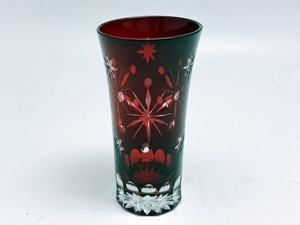 切子グラス 結晶 ひとくちビールグラス 赤