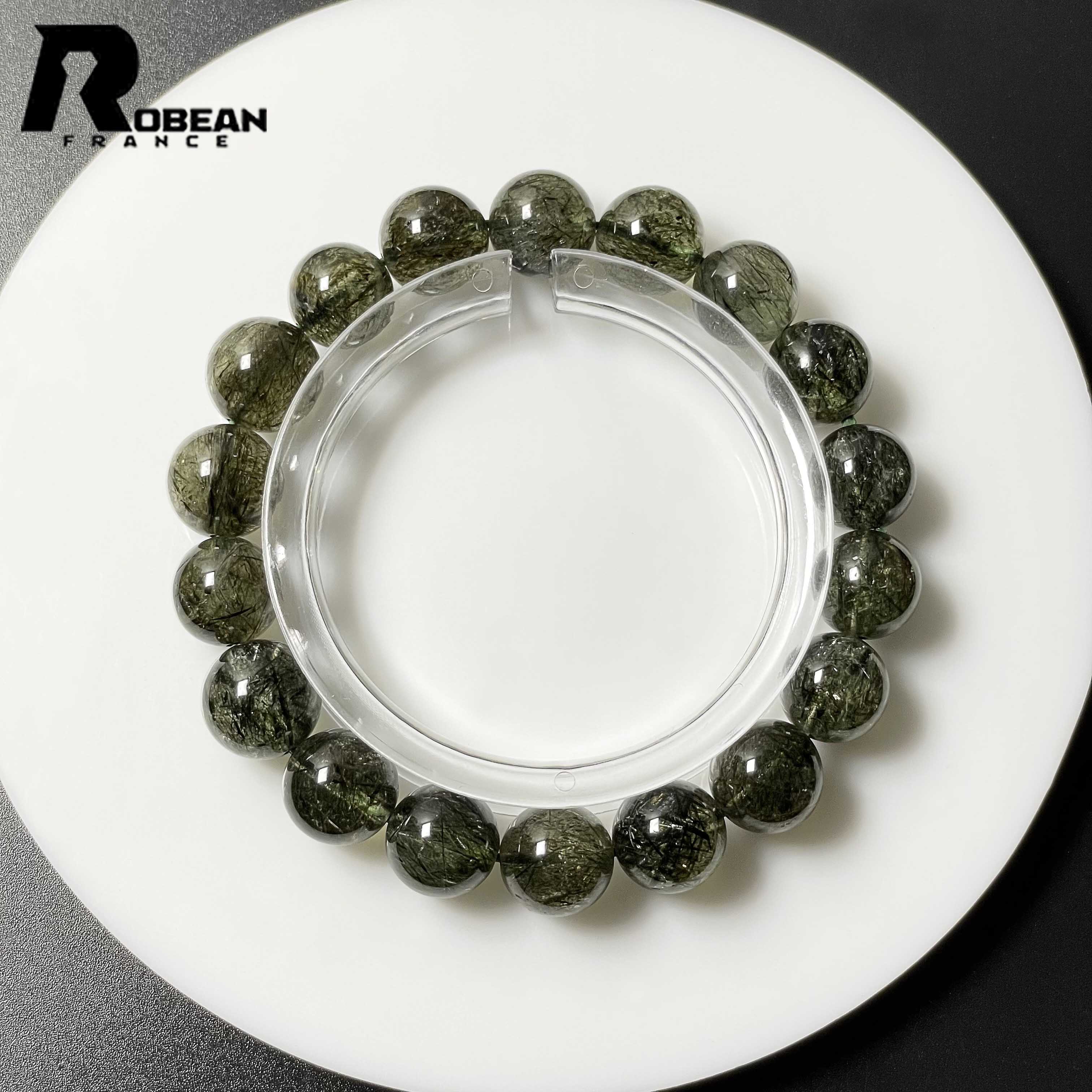 レア EU製★ROBEAN・グリーントルマリンルチルクォーツ★ブレスレット パワーストーン 天然石 綺麗 ギフト 10.9-11.8mm L0310183