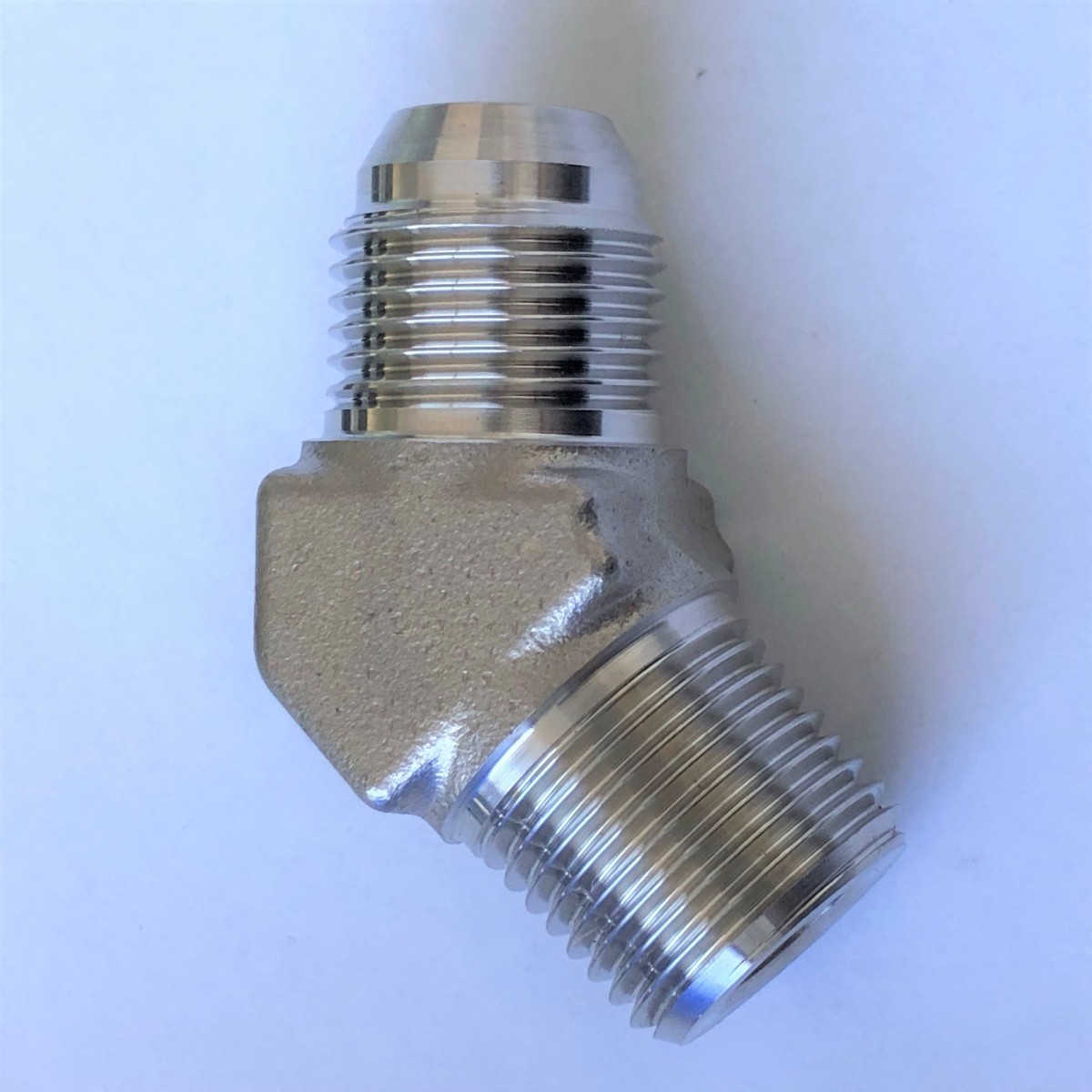 高圧アダプター、油圧アダプター、高圧継手、SR-35タイプ R1/4×G1/4 45°エルボ管用平行オネジ(でっぱりシート)×Rオネジ 鉄製