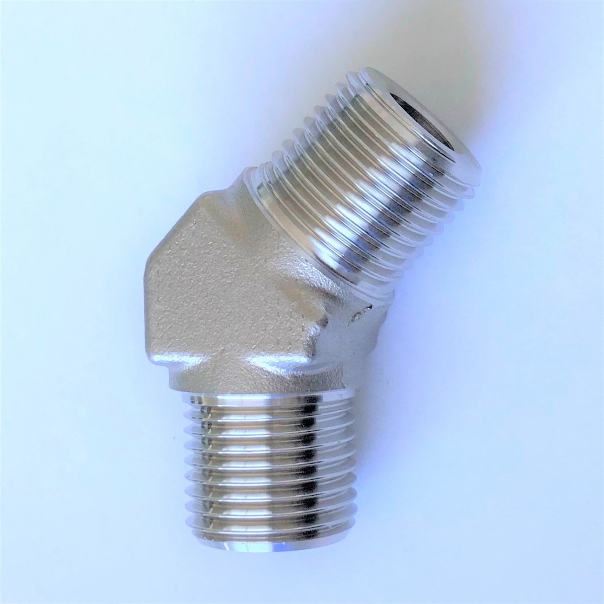 高圧アダプター、油圧アダプター、高圧継手、SR-36タイプ R1/2×G1/2 45°エルボ管用平行オネジ(へっこみシート)×Rオネジ 鉄製