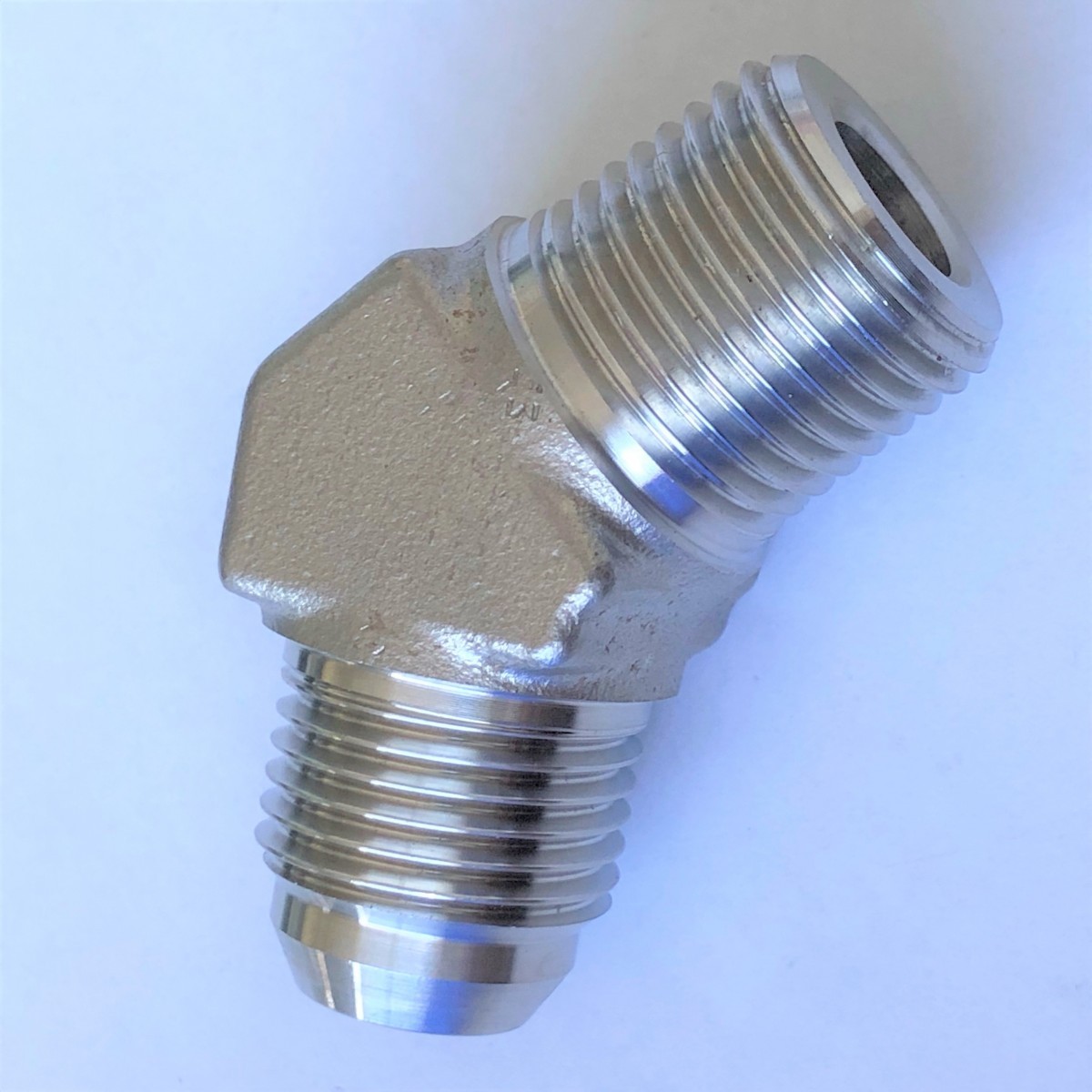 35タイプ R3/8×G3/8 45°エルボ平行ガスオネジ(でっぱりシート)×Rオネジ 高圧継手 ステンレス製