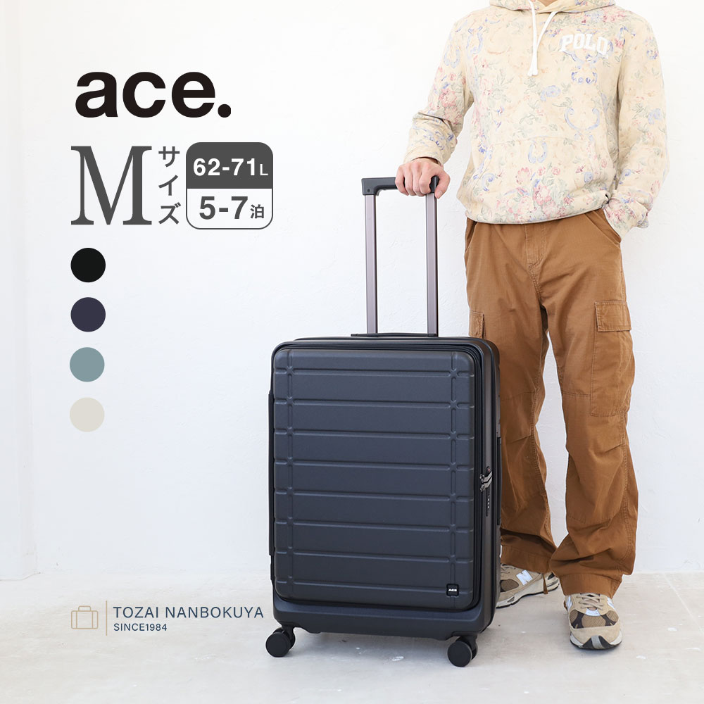 完全フロントオープン構造を採用し、立てたまま荷物を取り出せます。空港やホテルの狭いスペースでもケースを大きく広げる必要がなく、上着やポーチ、ガジェットなど必要な物をすぐ取り出せる便利な仕様です。