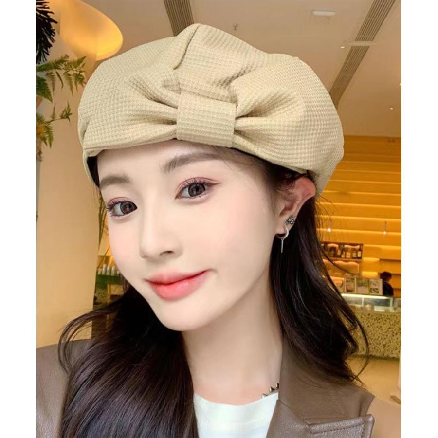 かぼちゃ帽子 ボリューム ビックリボン キャップ 秋冬 ベレーキャップ 無地 小顔 きれいめ 防寒