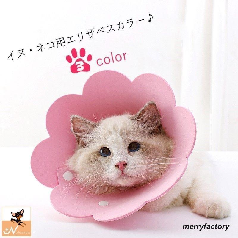エリザベスカラー ネコ 猫 小型犬 ペット用品 ペット雑貨 スナップボタン フラワー 花型 無地 イー ピンク オレンジ シンプル かわいい キュ