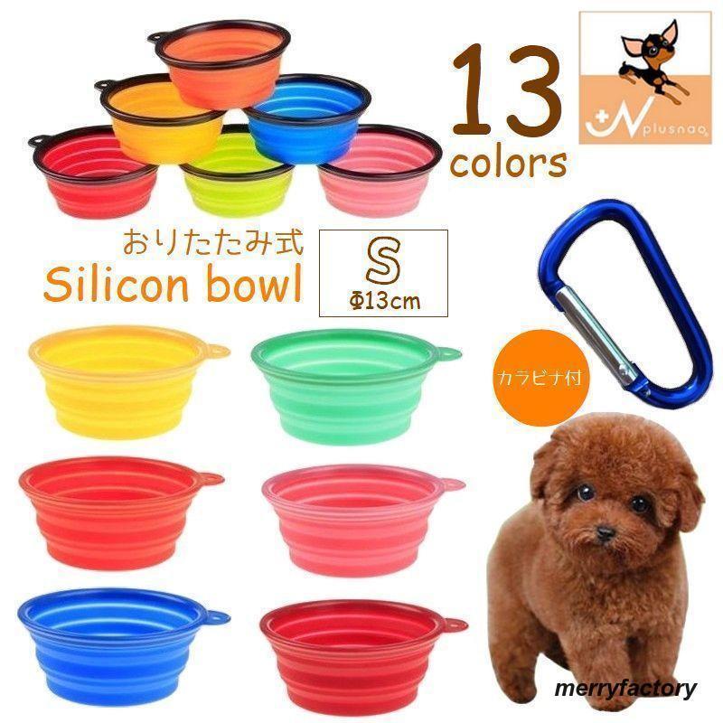 ペット用食器 折りたたみボウル 直径13cm シリコンボウル カラビナ付 水飲みボウル 携帯食器 犬 猫 お出掛け お散歩 旅行 ドライブ フードボウ