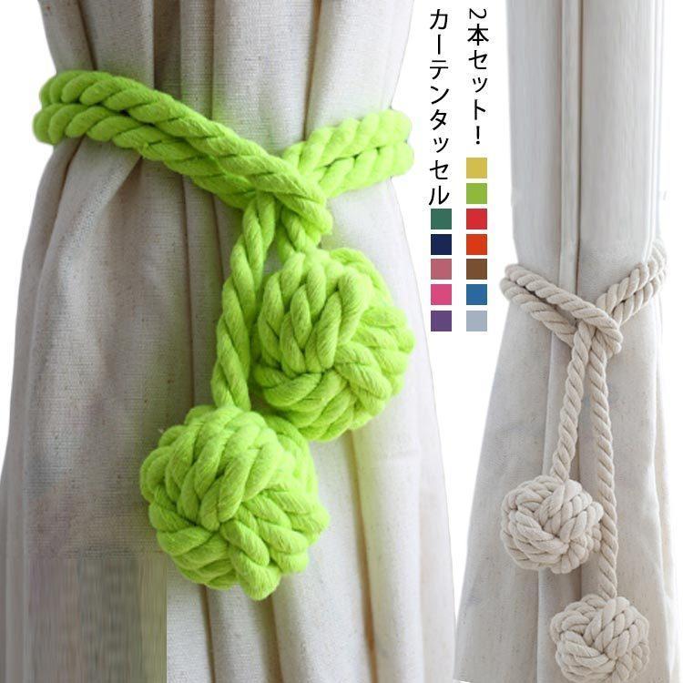 カーテンタッセル おしゃれ ロープ風 大きなボンボン付き タッセル カーテン 留め具 2本セット カーテン留め カーテン装飾タッセル 紐 装
