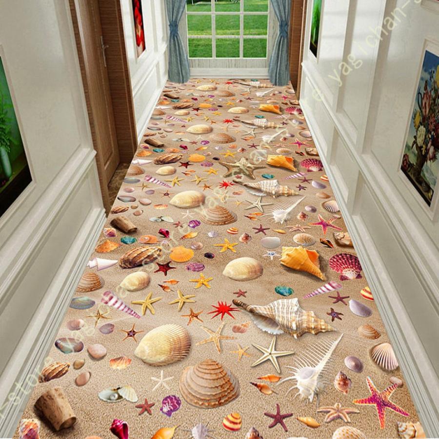 廊下用カ敷きカーペット ラグ ランナー 3D 長いです 滑り止め 柔らかい ロングマット 無味 お手入れが簡単 リアル 湖の水 魚 草原 に適し 家庭 ホテル 入り口