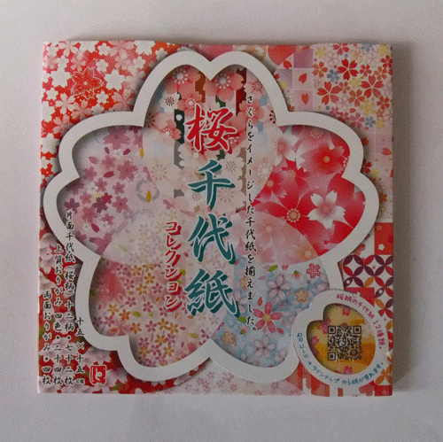 桜柄の片面千代紙が12柄、ピンク色の上質おりがみが4色