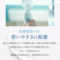 超音波治療で使われる幅広い周波数において高い伝導性を持ちながら、簡単に洗浄・拭き取りが可能なゲルです。
