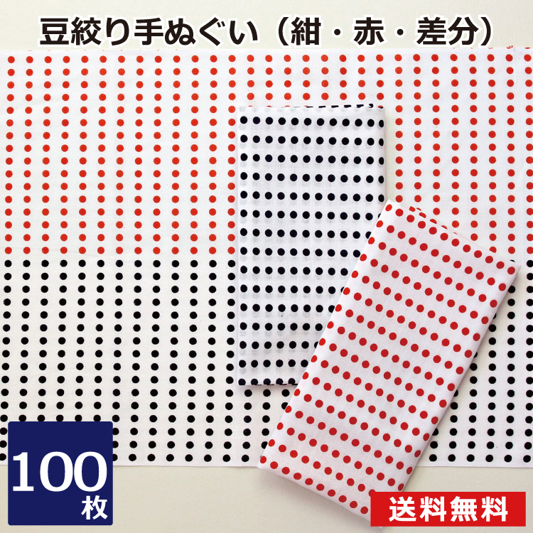 豆絞り手ぬぐい 100セット 昔ながらの豆絞り手ぬぐい お祭り イベント はちまき 手拭い 祭り 豆しぼり 赤豆 紺豆 差分豆 赤紺 紺赤 NT027-100p