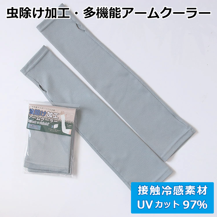 アームカバー 虫除け加工 アームクーラー 多機能 アウトドア レジャー 熱中症対策 スポーツ 屋外 接触冷感 UVカット ひんやり 冷却 グレー XM012