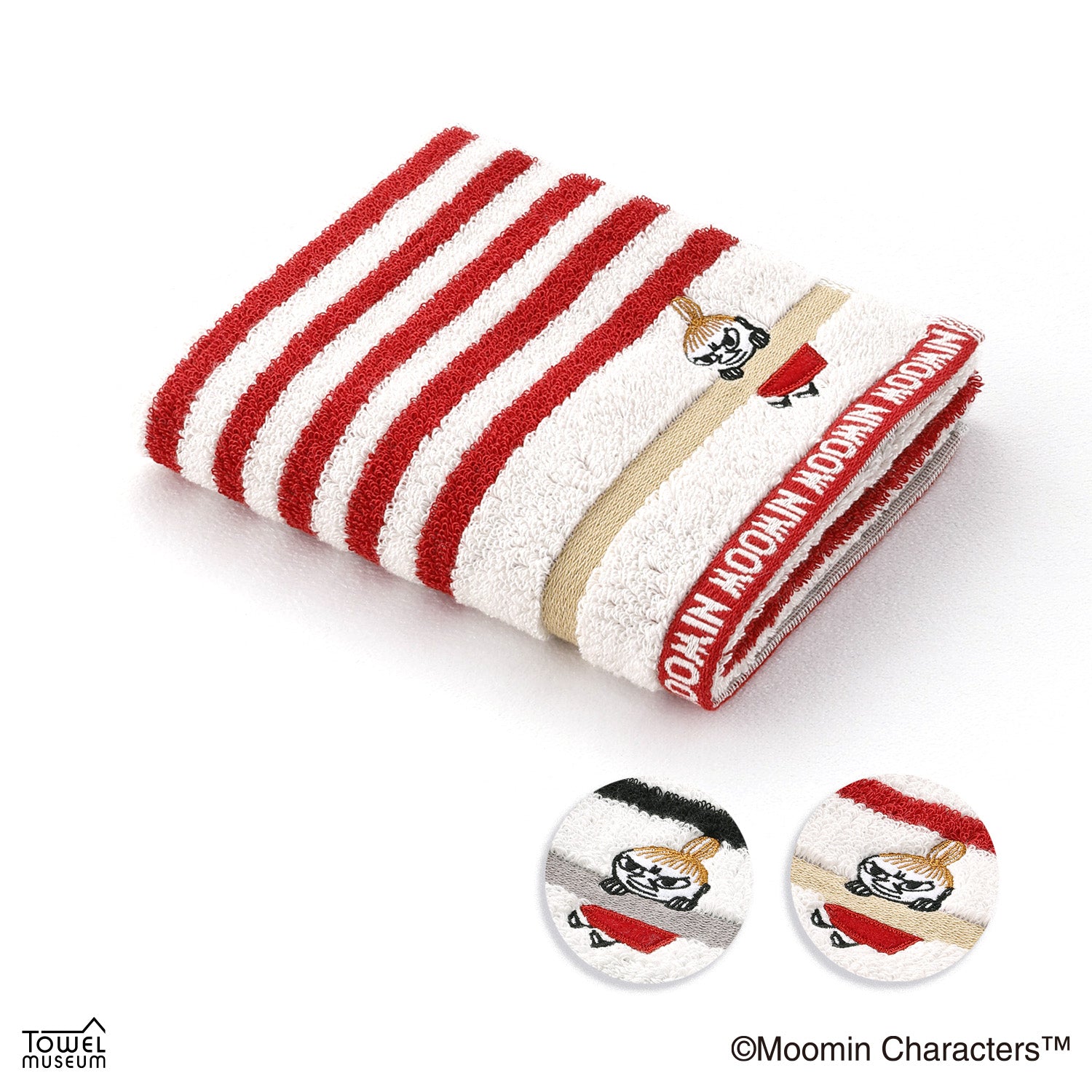 シンプルなボーダー柄に、右下へさりげなく施したリトルミイの刺繍が目を引くタオルです。
