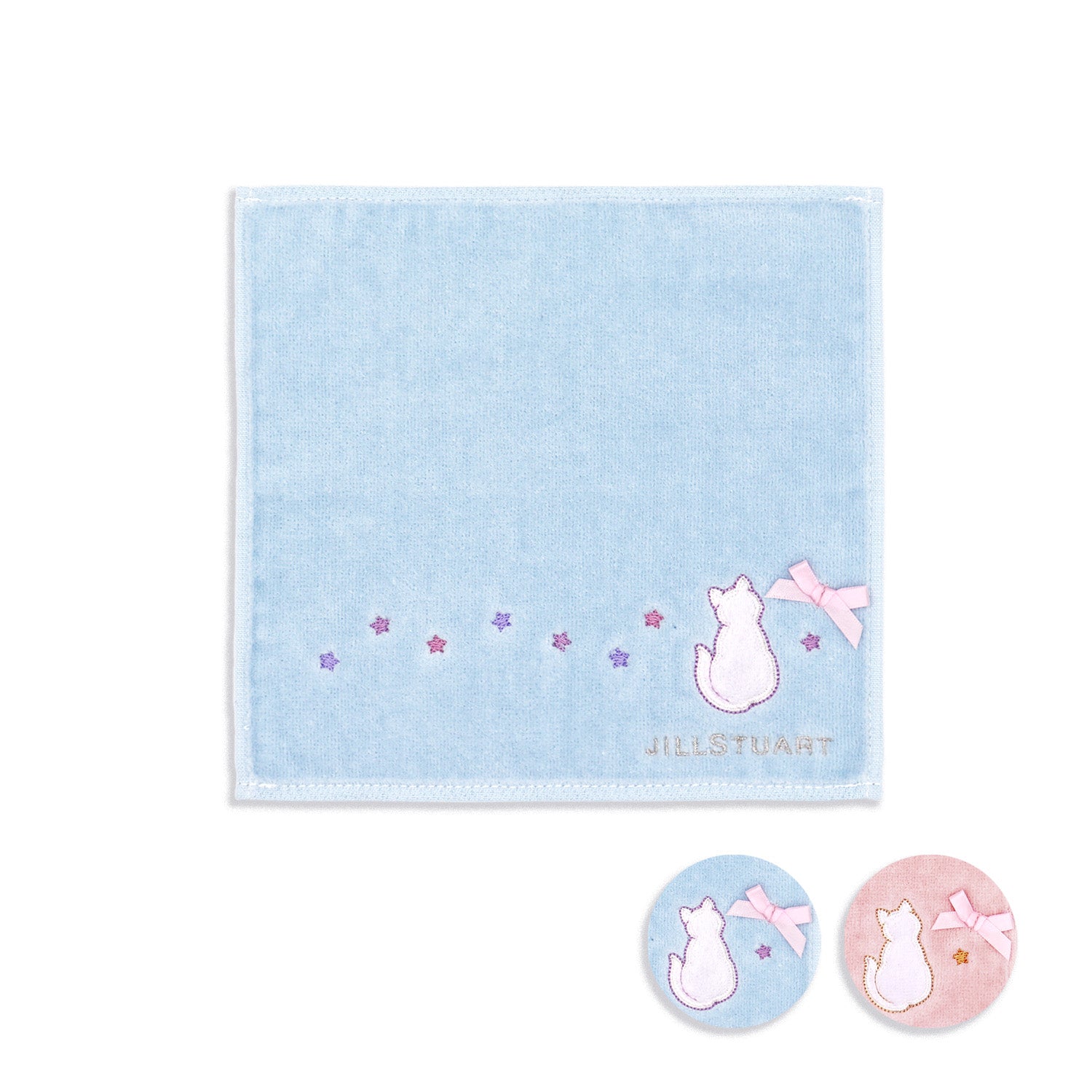 可愛らしいパステルカラーに子猫と星の刺繍をあしらったキュートなデザインのタオルハンカチ。