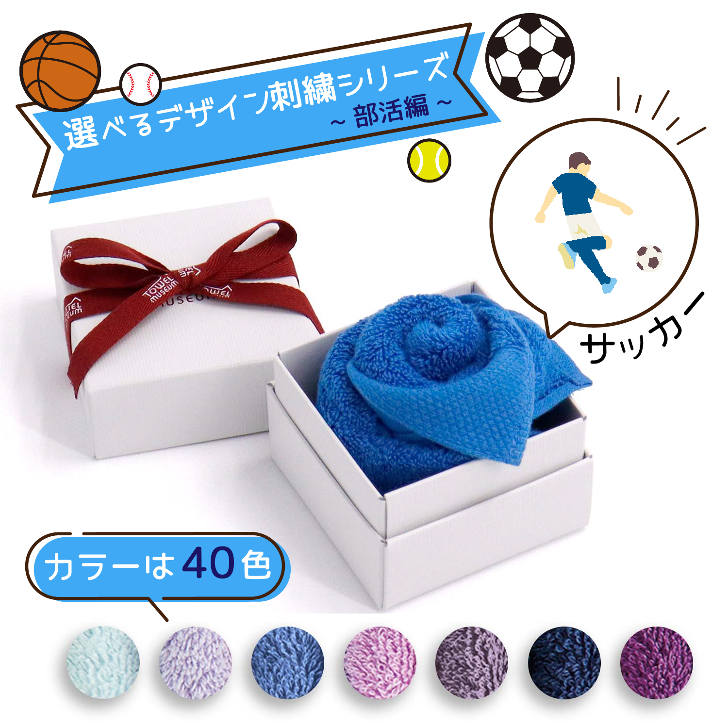 スポーツ 名入れ 刺繍 タオル 40色ハンカチ フラワーボックス ブルー系 部活編 サッカー ギフト プレゼント お祝い 贈り物 タオル美術館 公式 記念品 クリスマス