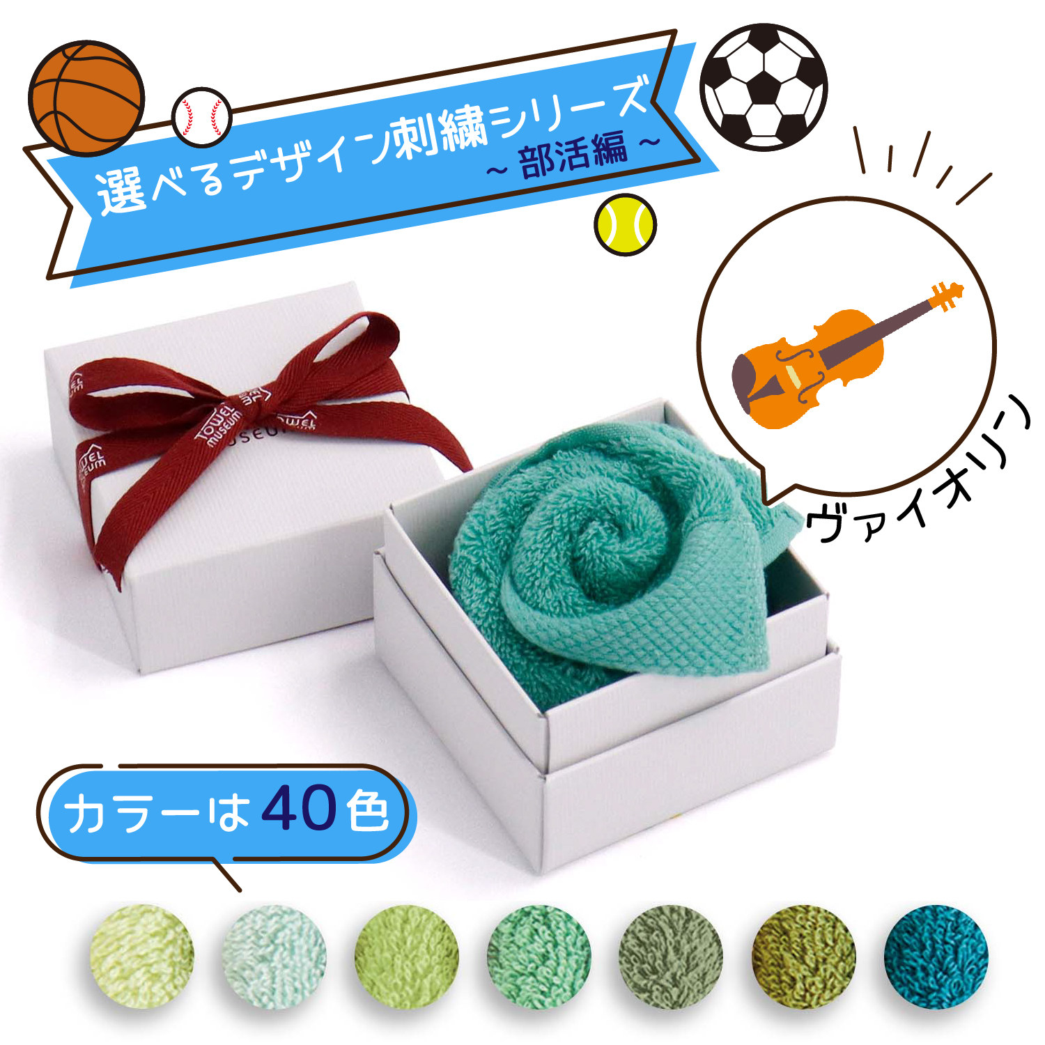 楽器 名入れ 刺繍 タオル 40色ハンカチ フラワーボックス グリーン系 部活編 ヴァイオリン ギフト プレゼント お祝い タオル美術館 公式 記念品 クリスマス