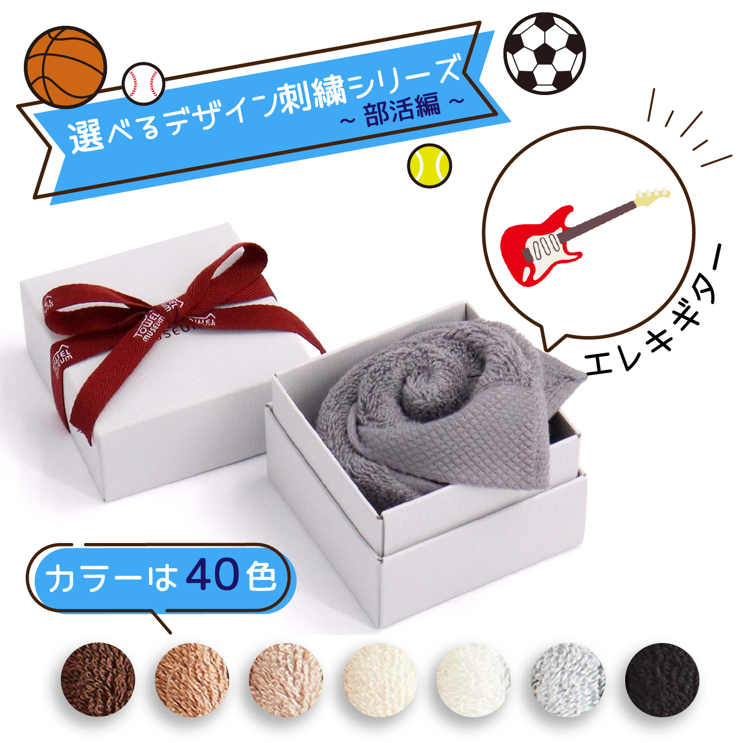 楽器 名入れ 刺繍 タオル 40色ハンカチ フラワーボックス モノトーン系 部活編 エレキギター ギフト プレゼント タオル美術館 公式 記念品 クリスマス