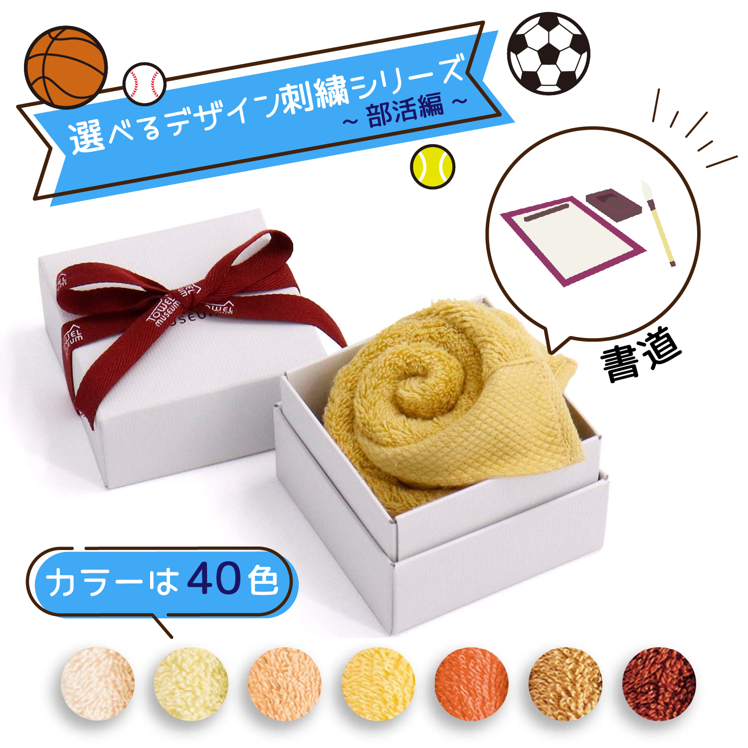 書道 名入れ 刺繍 タオル 40色ハンカチ フラワーボックス イエロー系 部活編 書道 ギフト プレゼント お祝い 贈り物 タオル美術館 公式 記念品 クリスマス