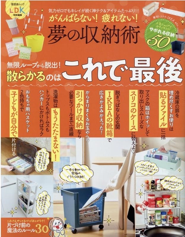 発売日:2021年12月/商品ID:5304748/ジャンル:DOMESTIC BOOKS/フォーマット:Mook/構成数:1/レーベル:晋遊舎/タイトル:がんばらない!疲れない!夢の収納術 気力ゼロでもキレイが続く神テク&アイテムたっぷり!! 晋遊舎ムック/タイトルカナ:ガンバラナイ ツカレナイ ユメ ノ シユウノウジユツ キリヨク ゼロ デモ キレイ ガ ツズク カミテク アンド アイテム タツプリ シンユウシヤ ムツク