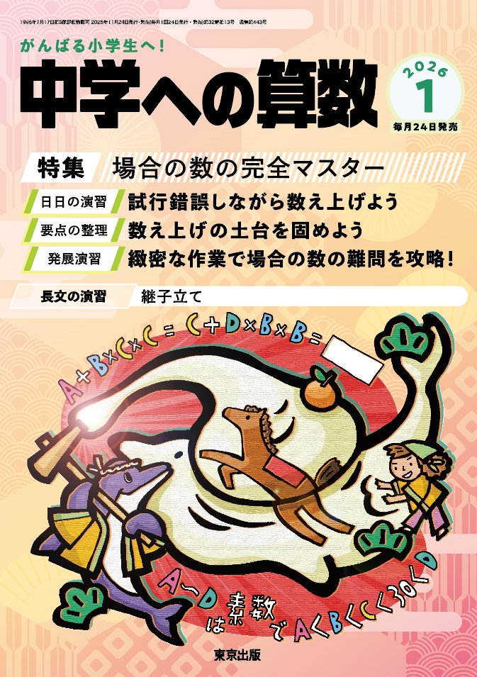 発売日:2025年11月21日/商品ID:7816151/ジャンル:DOMESTIC MAGAZINE/フォーマット:Magazine/構成数:1/レーベル:東京出版/タイトル:中学への算数 2026年 01月号 [雑誌]/タイトルカナ:チュウガクヘノサンスウ