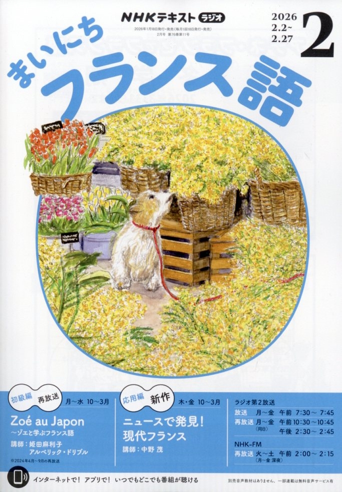 発売日:2026年01月17日/商品ID:7945505/ジャンル:DOMESTIC MAGAZINE/フォーマット:Magazine/構成数:1/レーベル:NHK出版/タイトル:NHK ラジオまいにちフランス語 2026年 02月号 [雑誌]/タイトルカナ:NHKラジオマイニチフランスゴ