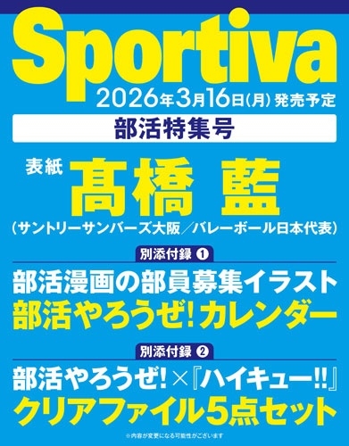 発売日:2026年03月16日/商品ID:7945698/ジャンル:DOMESTIC BOOKS/フォーマット:Mook/構成数:1/レーベル:集英社/タイトル:Sportiva 部活特集号/タイトルカナ:スポルティーバ