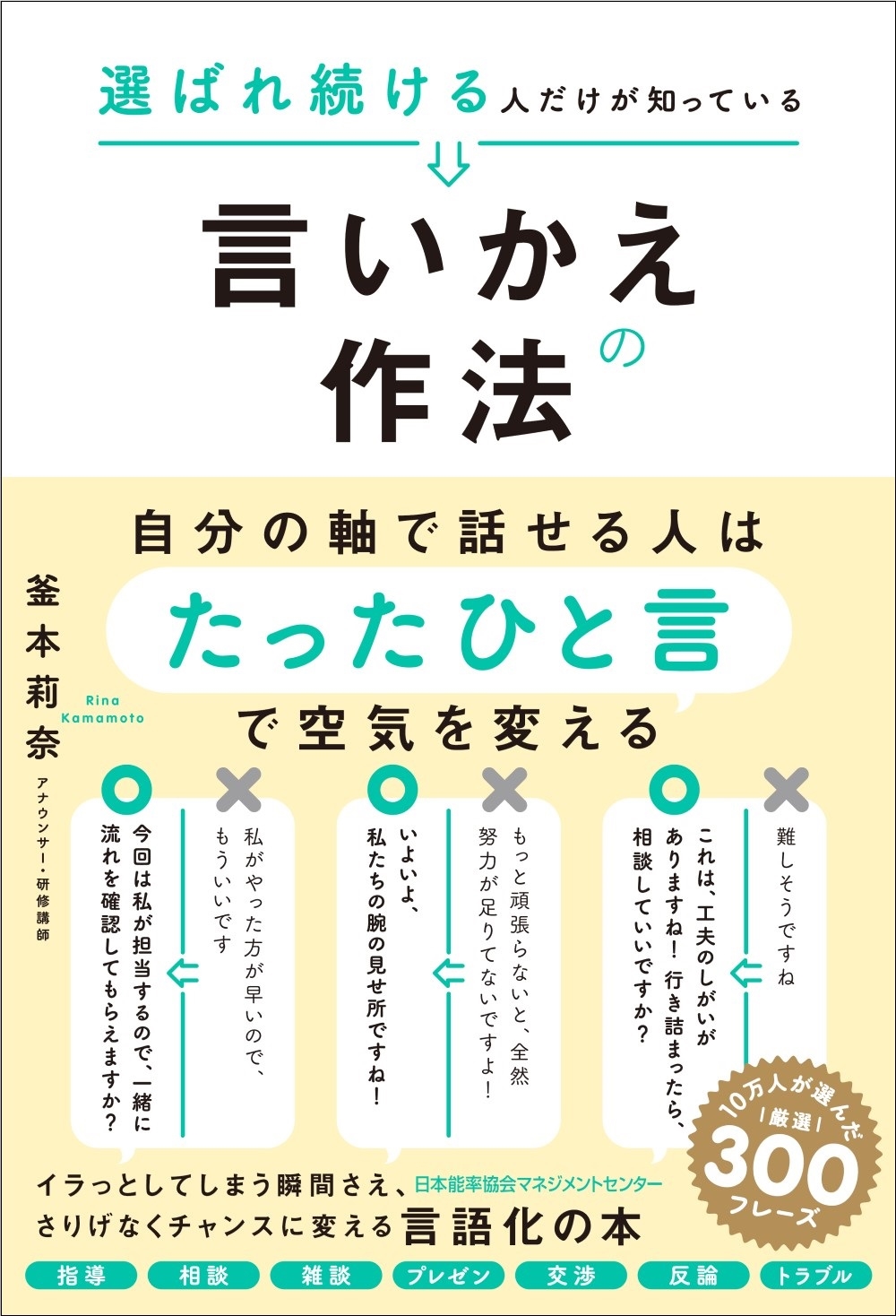 発売日:2026年02月25日/商品ID:7963487/ジャンル:DOMESTIC BOOKS/フォーマット:Book/構成数:1/レーベル:日本能率協会マネジメントセンター/アーティスト:釜本莉奈/アーティストカナ:カマモト リナ/タイトル:選ばれ続ける人だけが知っている言いかえの作法/タイトルカナ:エラバレツヅケルヒトダケガシッテイルイイカエノサホウ