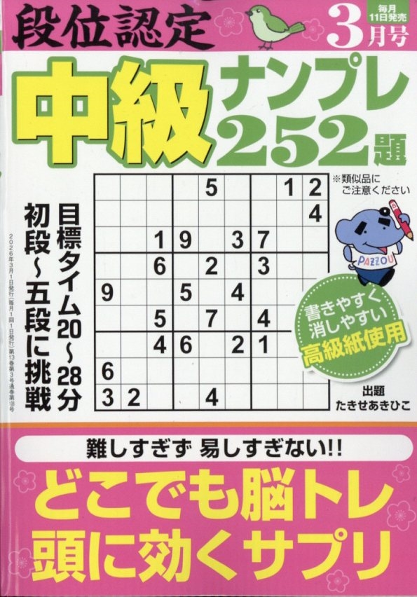 段位認定 中級ナンプレ252題 2026年 03月号 [雑誌] Magazine