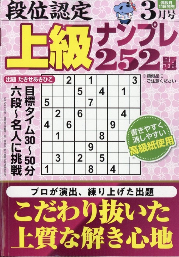 段位認定上級ナンプレ252題 2026年 03月号 [雑誌] Magazine