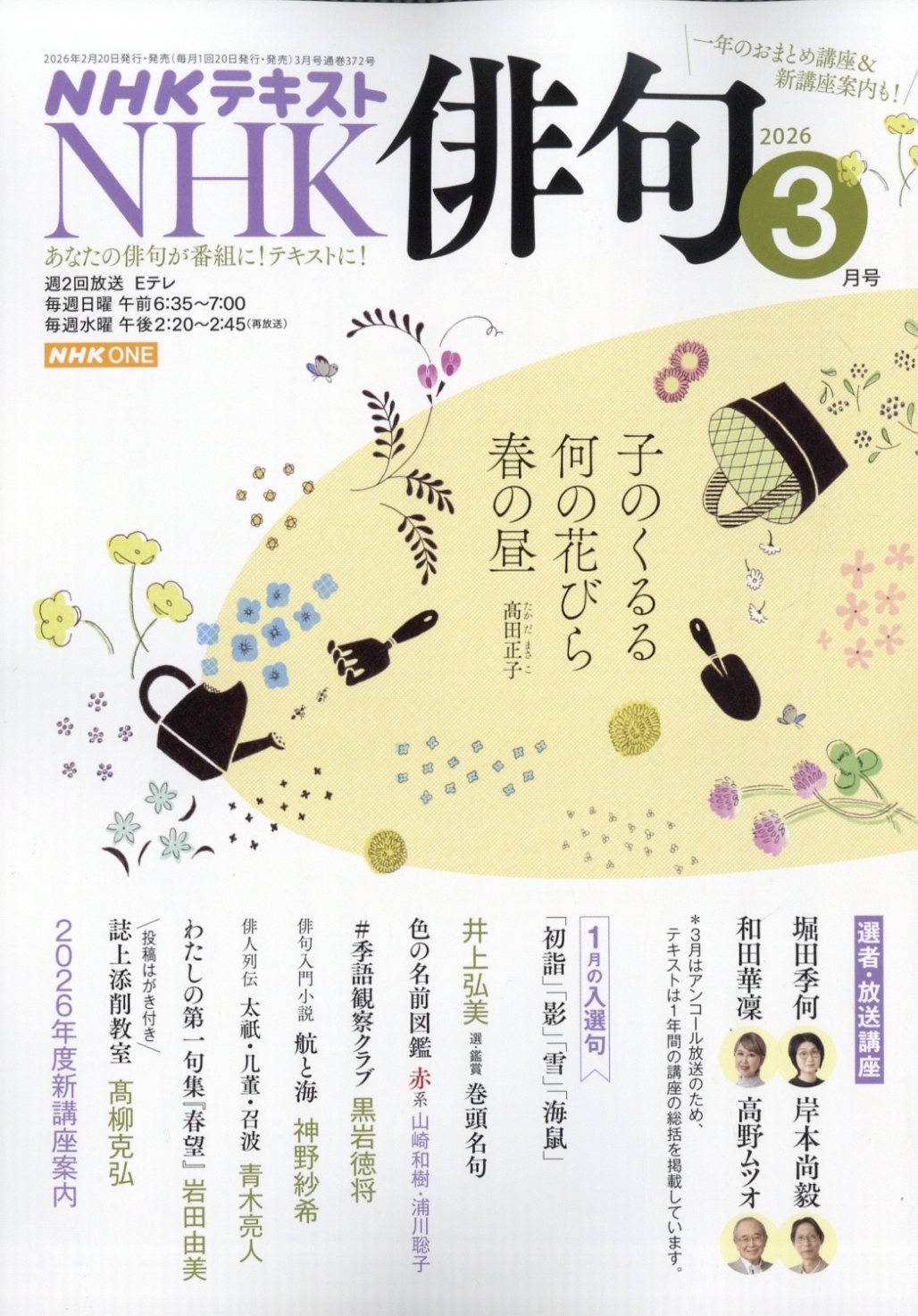 発売日:2026年02月19日/商品ID:7966094/ジャンル:DOMESTIC MAGAZINE/フォーマット:Magazine/構成数:1/レーベル:NHK出版/タイトル:NHK 俳句 2026年 03月号 [雑誌]/タイトルカナ:NHKハイク