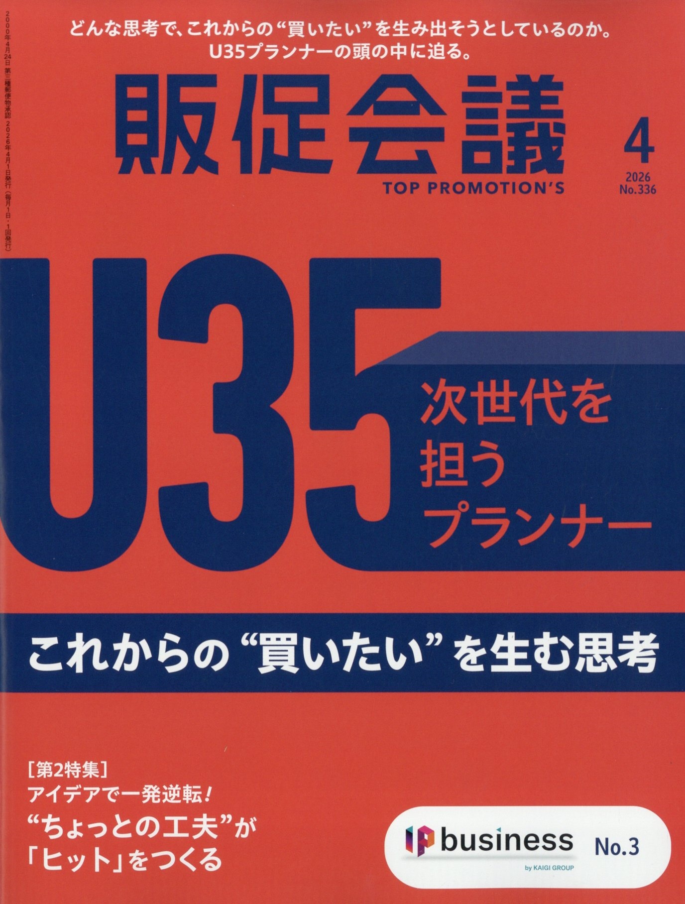 発売日:2026年02月28日/商品ID:7978201/ジャンル:DOMESTIC MAGAZINE/フォーマット:Magazine/構成数:1/レーベル:宣伝会議/タイトル:トッププロモーションズ販促会議 2026年 04月号 [雑誌]/タイトルカナ:トッププロモーションズ ハンソクカイギ