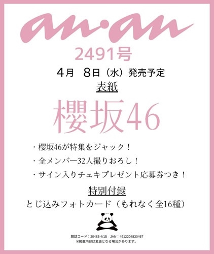 発売日:2026年04月08日/商品ID:7986601/ジャンル:DOMESTIC MAGAZINE/フォーマット:Magazine/構成数:1/レーベル:マガジンハウス/タイトル:anan 2026年4月15日号 No.2491/タイトルカナ:アンアン