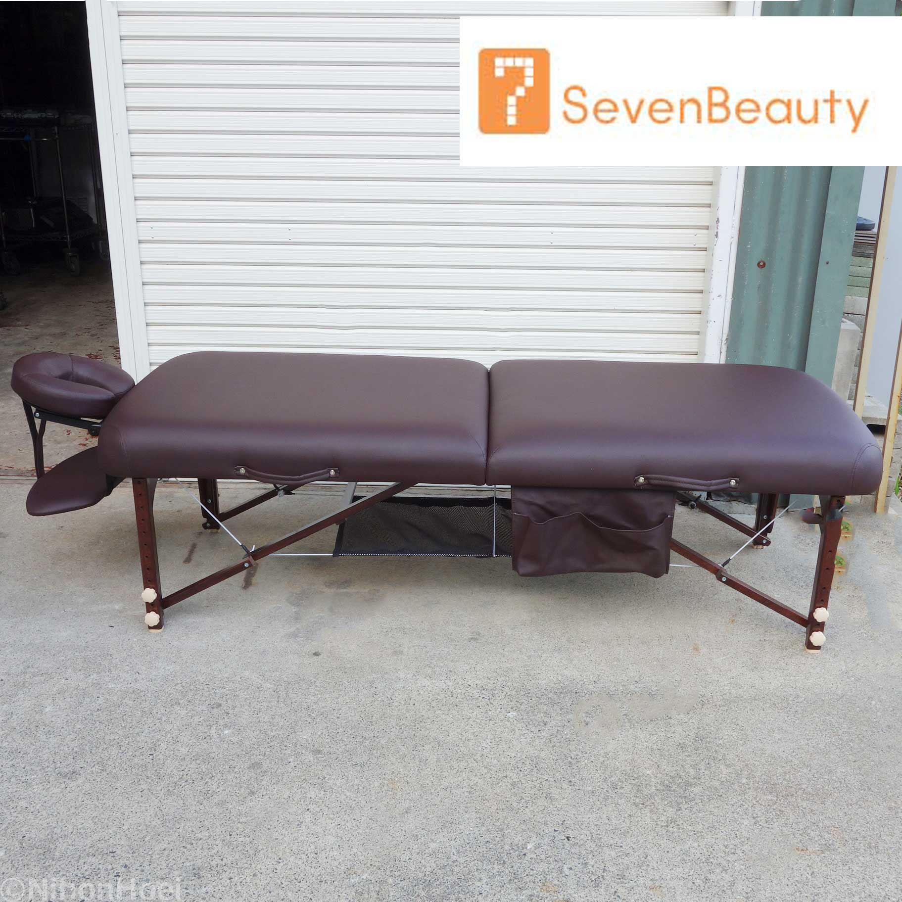 【B】7BEAUTY 折りたたみ マッサージベッド デラックスタイプ◆ 幅1840×奥行770×高さ540〜830mm ダークブラウン