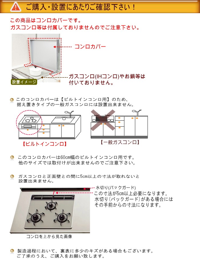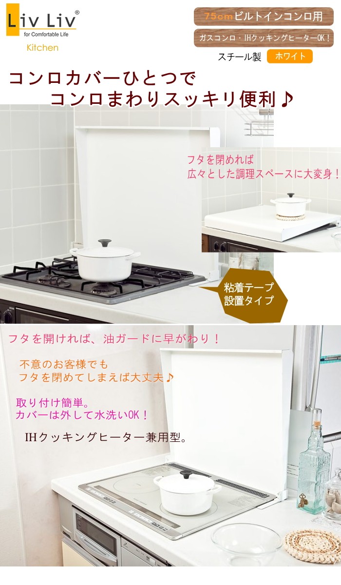 ※コンロカバーは、油ハネなどから周りの壁をガードしたり、一時的な調理スペースとしてお使い頂くための商品です。