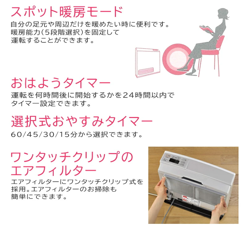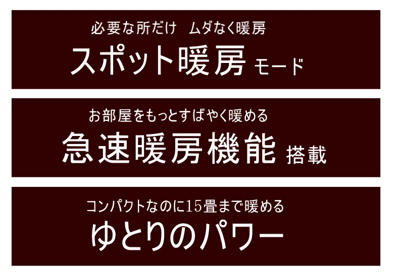 ・暖房の目安(最大):木造11畳/コンクリート15畳まで
