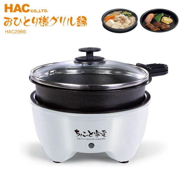 HAC ハック ちょこっと家電 おひとり様グリル鍋 ちょい鍋 煮る・焼く 1人用鍋 HAC2966 ホワイト