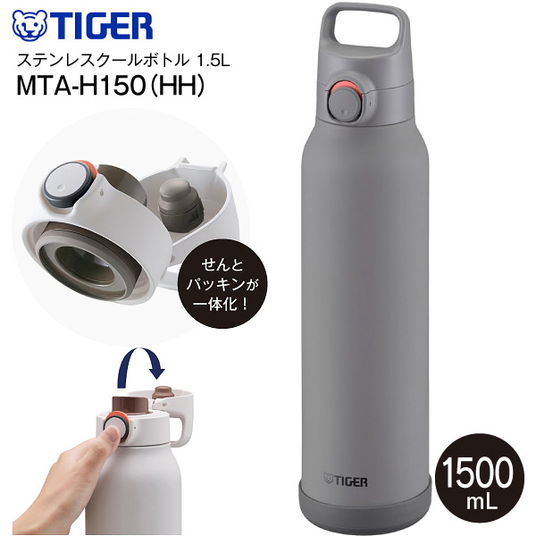 MTA-H150(HH) タイガー魔法瓶 真空断熱ボトル 直飲み ワンプッシュボトル ステンレスボトル ステンレスマグボトル 保冷専用 TIGER 水筒 1.5L(1500ml) グレー