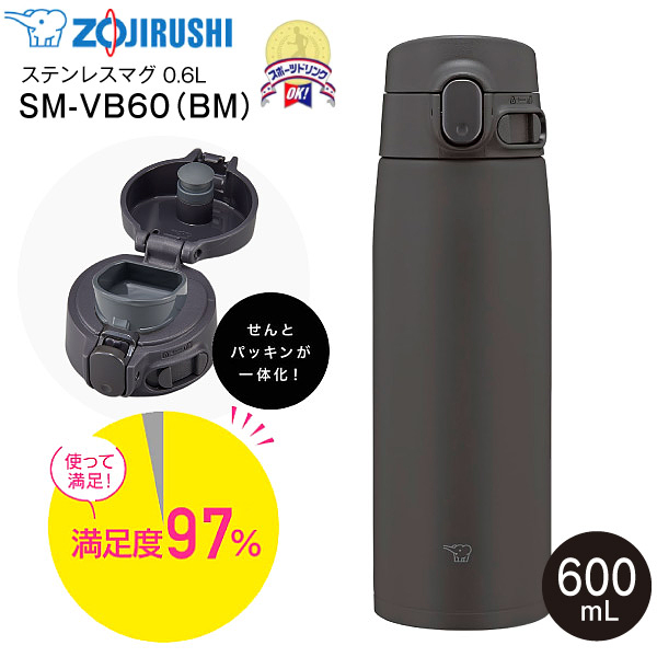 SM-VB60(BM) 象印 ステンレスマグボトル 水筒 ステンレスボトル 保温保冷 ZOJIRUSHI 水筒 0.6L(600ml) せん一体型 シームレスせん ソフトブラック SM-VB60-BM