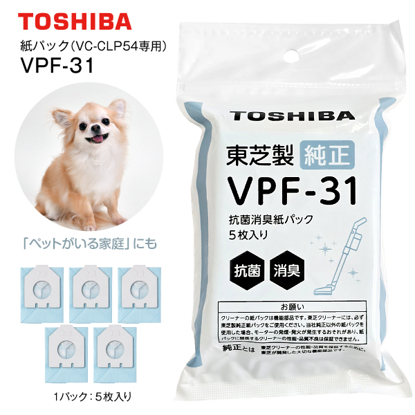 東芝 純正 VPF-31 スティック掃除機用抗菌・消臭機能付き紙パック クリーナー紙パック ダブル清潔紙パック(5枚入り) VC-CLP54専用 VPF31
