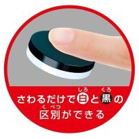 工夫2:コマの黒面は特殊な表面加工を行っていて、指で触ることで白と黒の判別ができる。