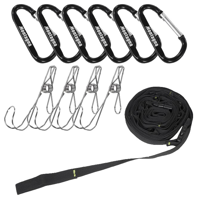Montagna アウトドア マルチハンギングベルト 6.5m HAC3033 (モンターナ) テント 吊り下げロープ カラビナ フック ランタン 収納 アウトドアギア キャンプ