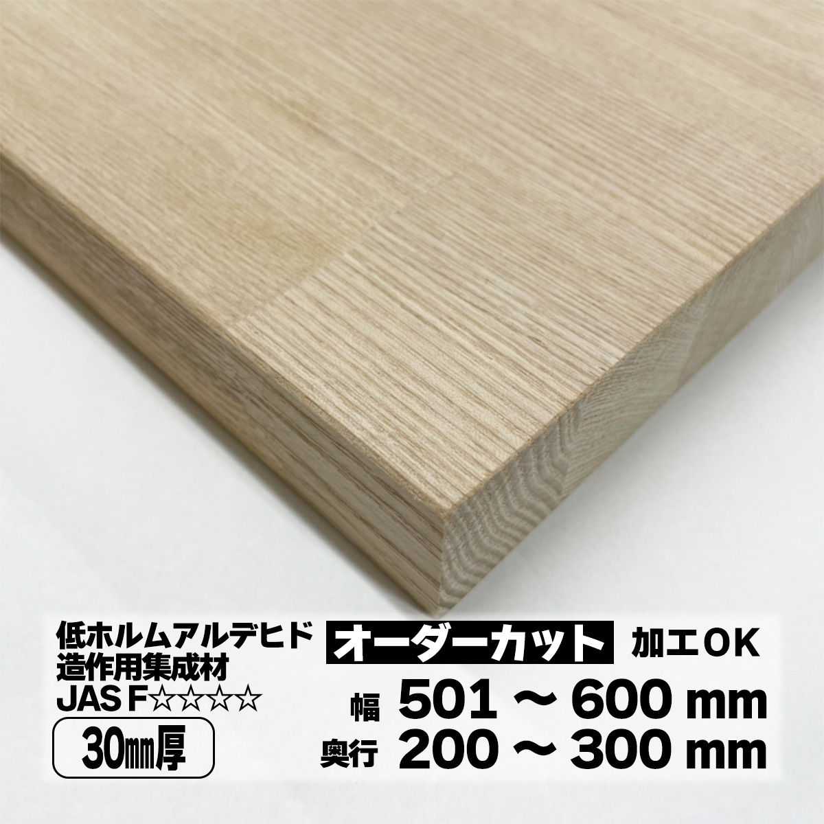 タモ集成材 オーダーカット 30mm厚 幅501〜600mm 奥行200〜300mm 棚板 天板 DIY