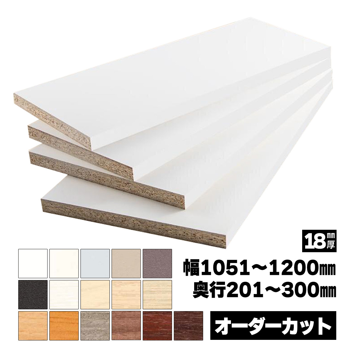 低圧メラミン化粧板 オーダーカット 18mm厚 幅1051〜1200mm 奥行201〜300mm 棚板 天板 DIY