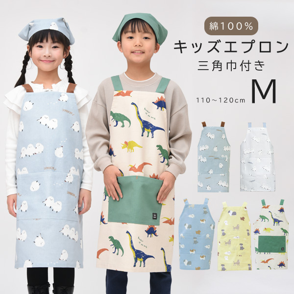 キッズエプロン アニマル 三角巾 セット Mサイズ 男の子 女の子 男女兼用