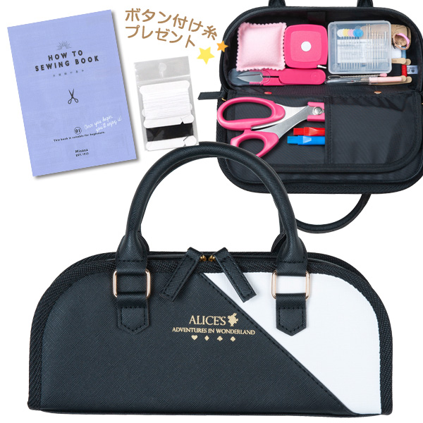 裁縫セット 小学校 女子 女の子 小学生 おしゃれ かわいい シンプル 大人 子供 ソーイングセット 裁縫道具 ラウンドタイプ アリス ブラック×ホワイト