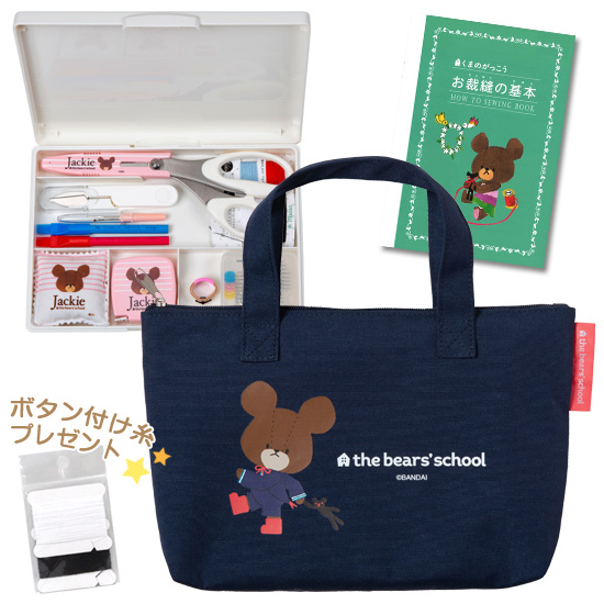 裁縫セット くまのがっこう 小学校 女子 女の子 小学生 おしゃれ かわいい シンプル 大人 子供 ソーイングセット 裁縫道具 ファスナートート ネイビー