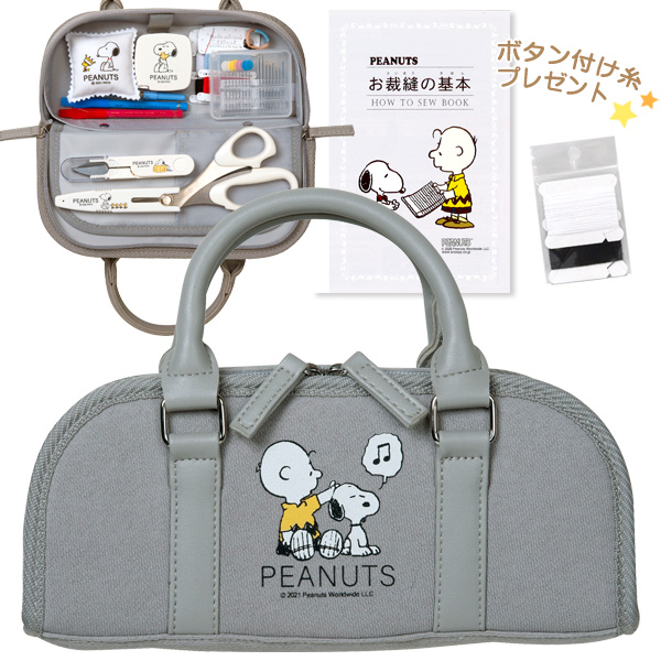 裁縫セット スヌーピー 小学校 女子 女の子 小学生 おしゃれ かわいい シンプル 大人 子供 ソーイングセット 裁縫道具 ラウンドタイプ グレー