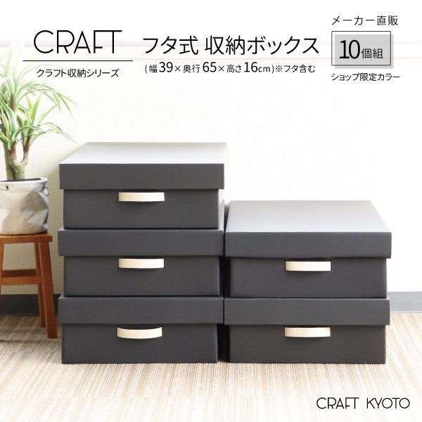 収納ボックス 収納ボックス CRAFT 押入れ用 ふた付き 10個組 ブラック 黒 ダンボール 段ボール クラフト ボックス 収納 ケース 奥行60cm 日本製