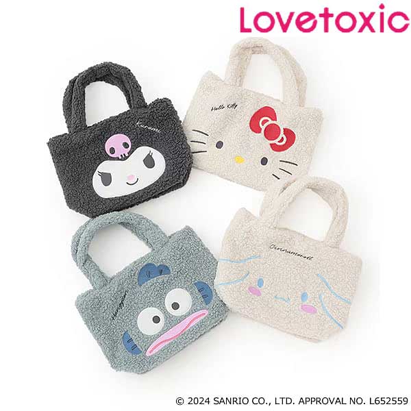 サンリオキャラクターズのフェイスをモチーフにした可愛らしいトートバッグです。