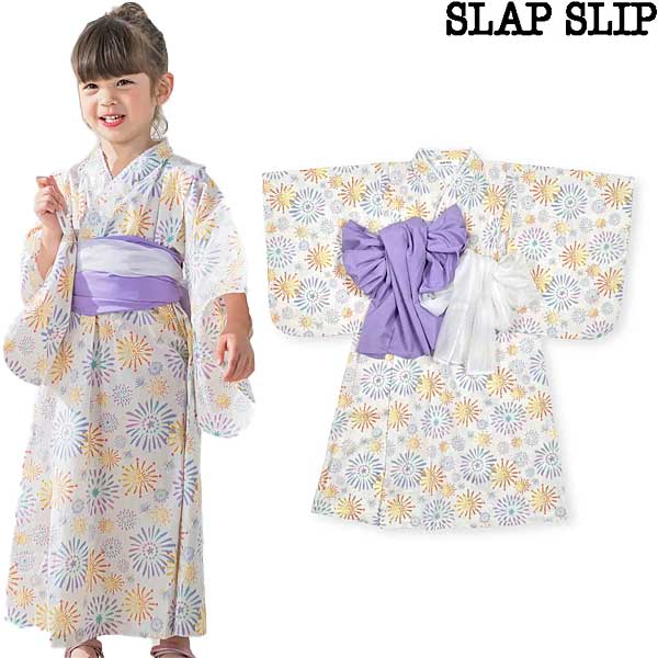 SLAP SLIP スラップスリップ 花火レモン花柄襟レース浴衣+帯セット 110-140cm 2024-05 1814-63508